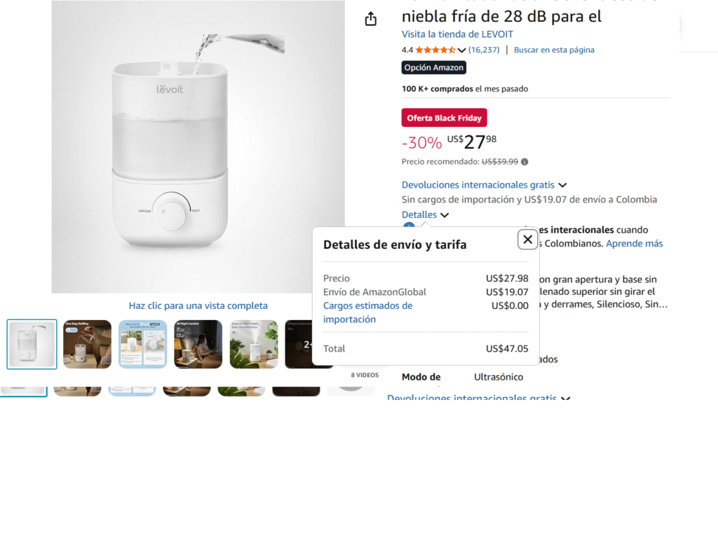 Estamos interesados en mostrarte la mejor opción para ti a un precio mas económico, si bien nuestros productos de Afiliados de Amazon no cuenta con un precio fijo para Colombia por que estos varias según el Dolar, en el área de Humidificadores Levoit resulta ser beneficioso. A continuación te mostraremos una comparación del porque debes elegir nuestros productos